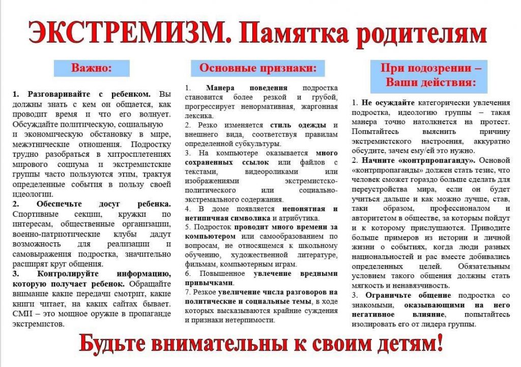 МероприятияМетодические рекомендацииОбучающие карточкиМероприятия 3 сентября — День солидарности в борьбе с терроризмом. 30 октября 2025 г. в МБОУ СОШ №3 прошёл инструктаж педагогических работников по оказанию первой помощи и профилактике вовлечения подростков в экстремистскую деятельность. Методические рекомендации Методические рекомендации по профилактике распространения идеологии терроризма, экстремизма и неонацизма Обучающие карточки
