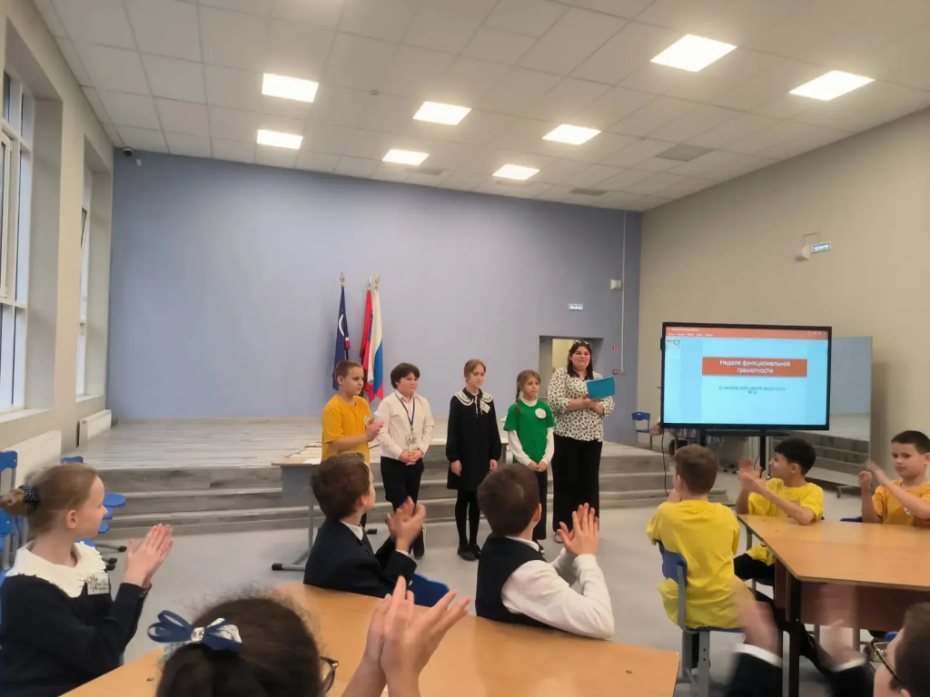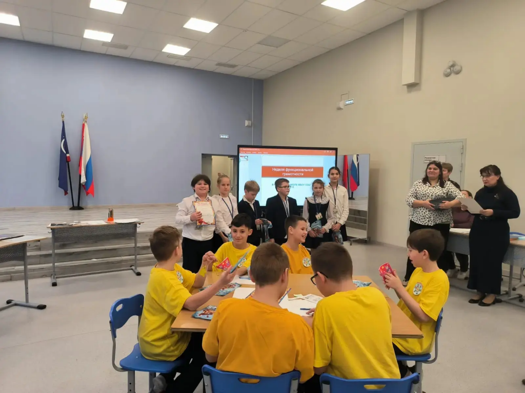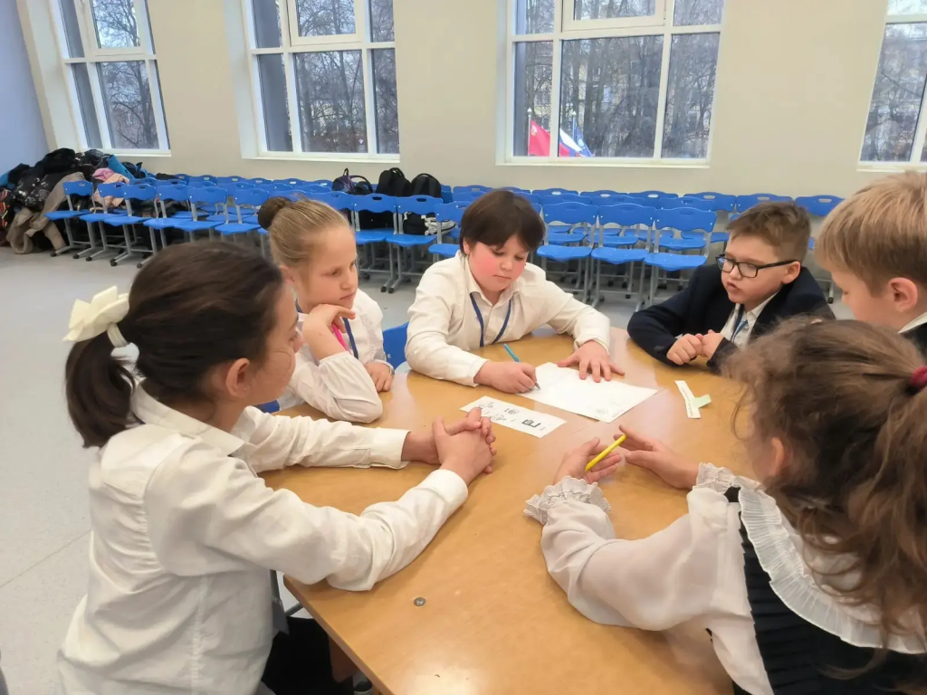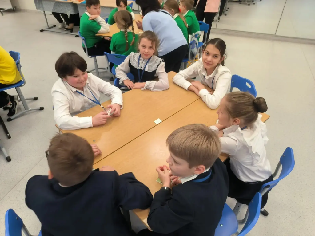 Ученики 4А класса с классным руководителем Тарасовой Е. М. приняли участие в игре “Математический калейдоскоп” в МБОУ СОШ 10.