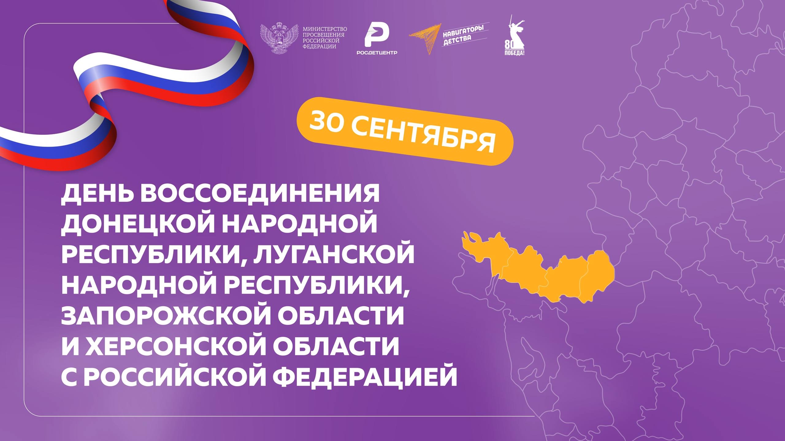 30 сентября, начиная с 2023 года, в России отмечается День воссоединения Донецкой Народной Республики, Луганской Народной Республики, Запорожской области и Херсонской области с Российской Федерацией.